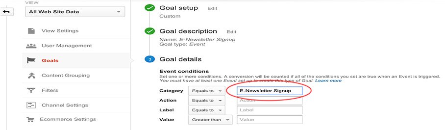 This goal will report on all E-Newsletter Signups across the entire site.