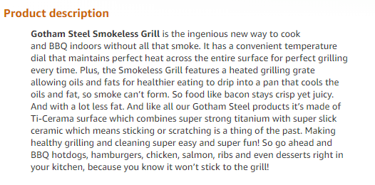 Here’s the product description for the same grill used in the example above: