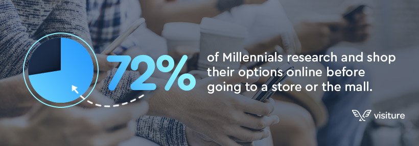 “72 percent of Millennials research and shop their options online before going to a store or the mall.”