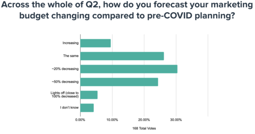- Q2 may be a static quarter, but almost nobody amongst the 500+ attendees reported that their total marketing budgets were turning off.