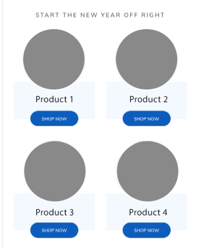 The desktop (top) version of the email renders correctly, while the mobile (bottom) email version renders misalignment when content components are stacked. There should be a gap between product 1 and 2, as well as between product 3 and 4. Additionally, product 2 and product 4 have shifted to the right and are not aligned with product 1 and product 3.