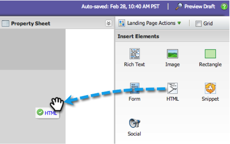 To put this code into the landing page, you just have to make an HTML box (Note: you have to be logged into Marketo to view this link) and copy/paste the code into it.