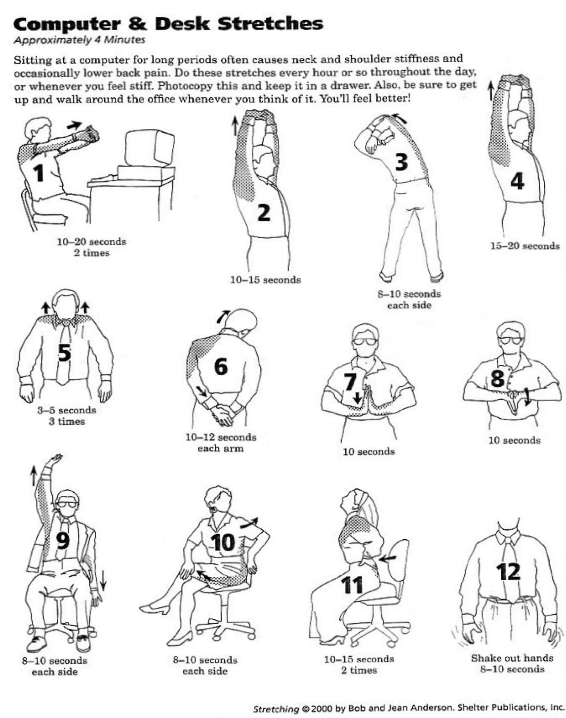 To further help with back pain and stiffness caused by sitting at a desk all day, the committee also posted a series of recommended Desk Stretches throughout the office. Taking even just a few minutes to stretch everyday can have tremendous effects helping prevent and relieve back pain.